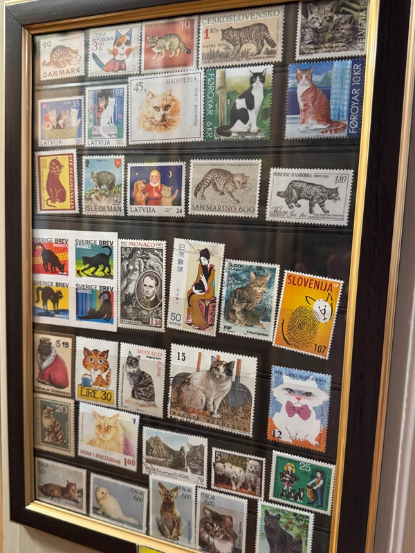 The museums collections consist of everything cat related in art and culture: cat-coins (2), cat-stamps and cat-postcards (3), cat themed posters and games, cat themed medals, as well as photographs and paintings from all over the world and from many different centuries with cats. Everything in the museum shows off very impressively that humans have always been obsessed with cats.