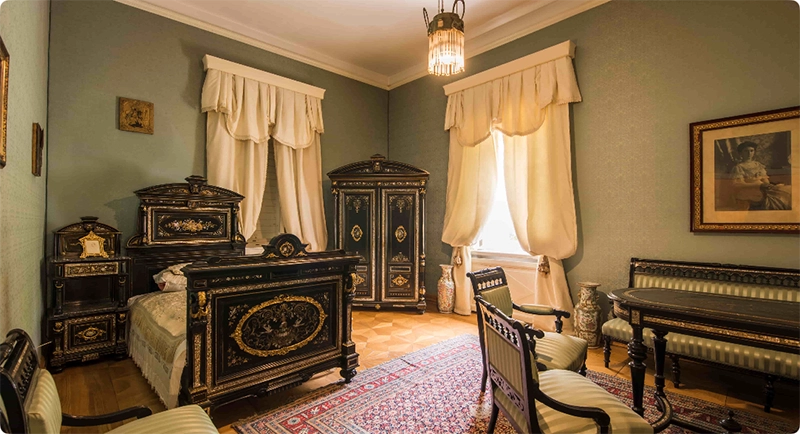 You’re not allowed to take pictures inside the museum, so every picture of the inside is directly from the museum itself, copyright and all. The rooms look exactly like in the pictures and there are a few more than depicted. Interestingly the bedrooms which have been preserved or restored are those of King Nikola and Queen Milena, as well as their two daughters Princess Ksenija (bottom left – 3rd) and Princess Vjera (bottom right – 4th). The only two children (out of 12) who lived into adulthood and died unmarried. They are also the same daughters who have been exhumed and reburied in Montenegrin soil on 1st October 1989 with their parents.